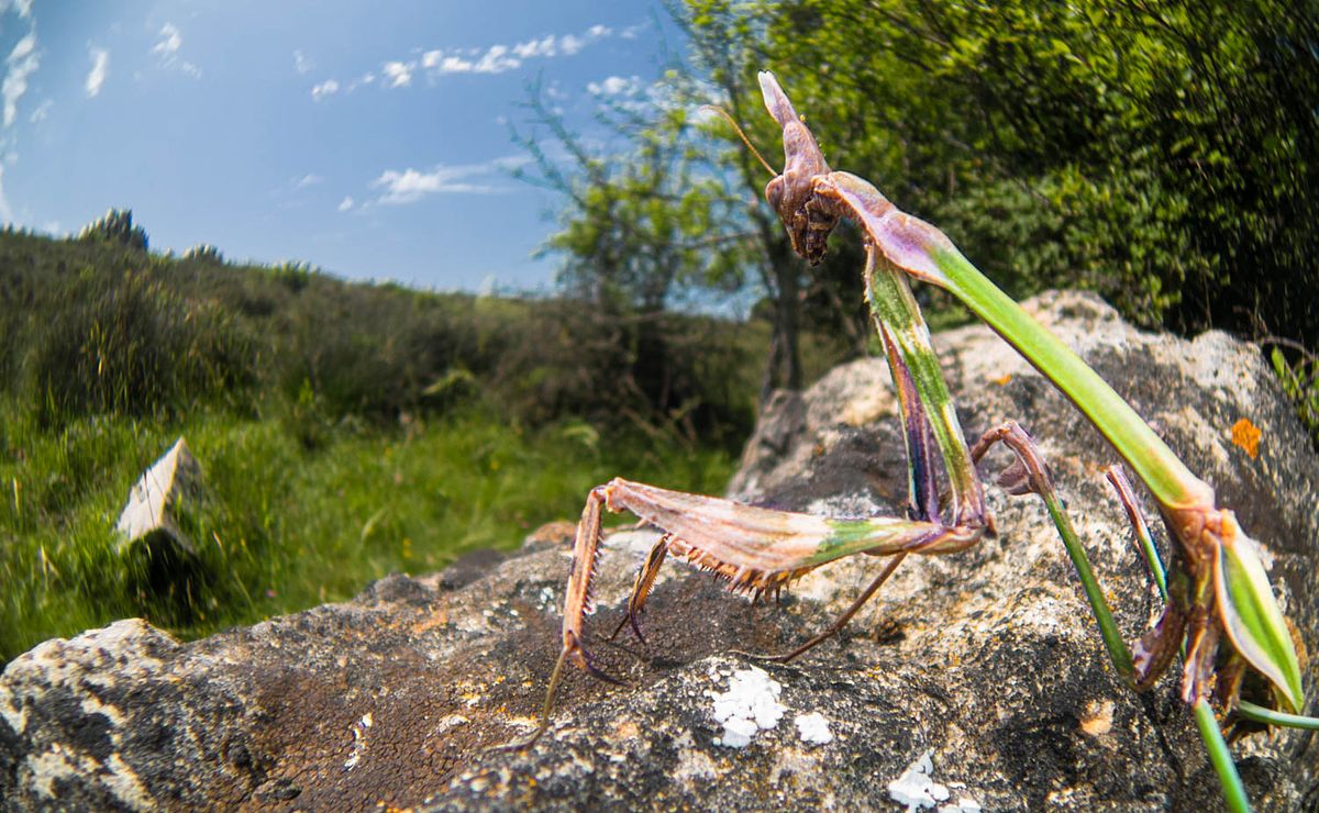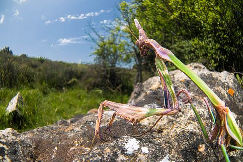 Die unterschiedlichen Habitate sorgen auch für eine vielfältige Insektenwelt. Obwohl es für viele Arten noch relativ früh im Jahr ist, stehen die Chancen gut auf große Fanghaubenschrecken (Empusa fasciata), die bereits als Nymphe überwintert haben. Auch Stabschrecken können zu dieser Jahreszeit schon eine beachtliche Größe erreicht haben. In lehmigen Böden finden wir zudem die charakteristischen Eingänge von Solitärbienen, die sich fotografisch spannend umsetzen lassen. Und auch wenn sie systematisch nicht zu den Insekten zählen, möchte ich die Chance auf Rankenfußkrebse sowie – abhängig von den Niederschlägen – mögliche Urzeitkrebse nicht unerwähnt lassen.