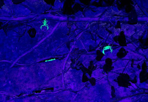 Ein besonderer Schwerpunkt liegt auf Skorpionen – sowohl bei Tag zwischen Felsstrukturen als auch nachts, wenn sie unter UV-Licht intensiv fluoreszieren. Gerade die nächtliche Suche eröffnet faszinierende fotografische Möglichkeiten. Darüber hinaus können wir auffällige Arten wie die orange gefärbten Männchen der Goldaugenspringspinne entdecken. Auch Luchsspinnen und Krabbenspinnen lassen sich in geeigneten Habitaten finden. Und auch wenn sie systematisch nicht zu den Spinnentieren zählen, möchten wir an dieser Stelle die eindrucksvollen Spinnenläufer und Hundertfüßer nicht unerwähnt lassen.